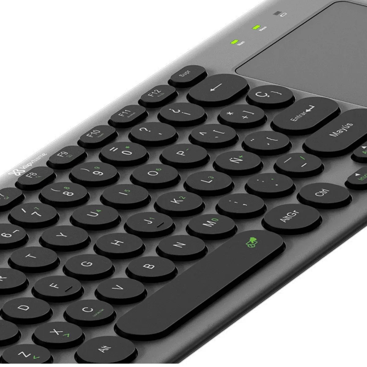 Teclado inalámbrico con panel táctil para mayor comodidad.